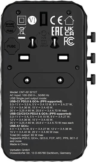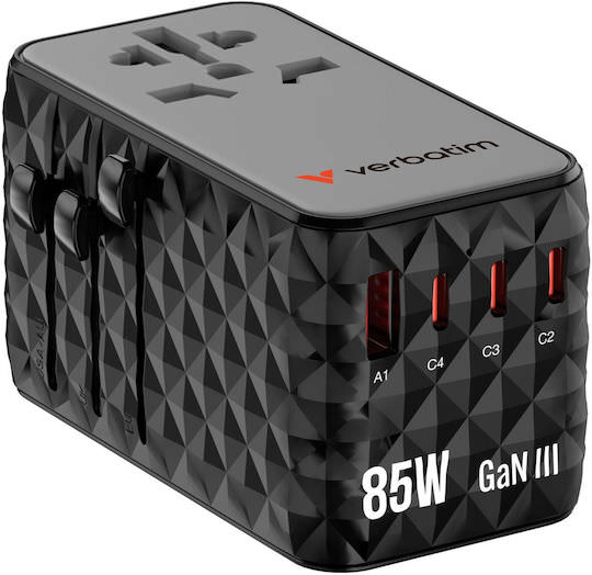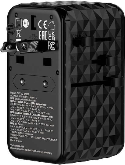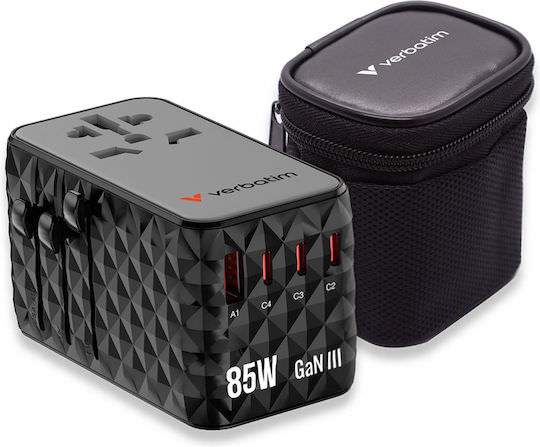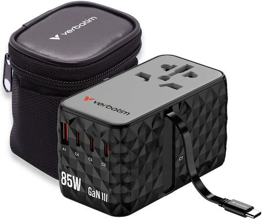 Αντάπτορας ταξιδιού Verbatim Charge’n’Travel Diamond 85 W με αναδιπλούμενο καλώδιο CNT-02 32127.