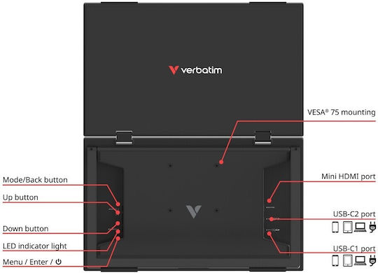 Verbatim B51261461 IPS HDR Φορητό Monitor 15.6″ FHD 1920×1200 με Χρόνο Απόκρισης 10ms GTG