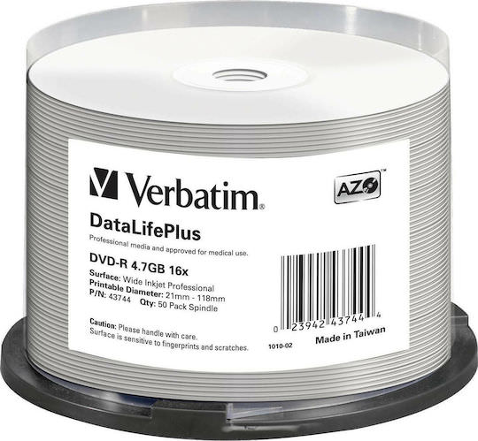 Verbatim Datalife Plus Εγγράψιμα DVD-R 16x 4.7GB Cake Box 50τμχ