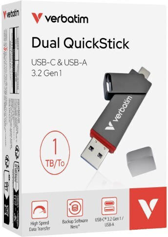 Η Verbatim Dual QuickStick USB drive συνδυάζει ταχύτητα και απόδοση επιπέδου SSD σε έναν συμπαγή USB δίσκο. Με ταχύτητες ανάγνωσης έως 510 MB/s και ταχύτητες εγγραφής έως 460 MB/s, οι μεγάλες αρχεία μπορούν να μεταφερθούν γρήγορα και αποτελεσματικά.