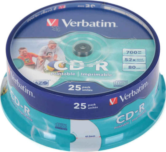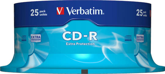 Εγγράψιμα CD σε συσκευασία 25 τεμαχίων της εταιρείας Verbatim για την αποθήκευση δεδομένων, φωτογραφιών ή της μουσικής σας. Τα CD-R δεν σβήνονται καθώς η εγγραφή τους επιτρέπεται μία φορά μόνο.