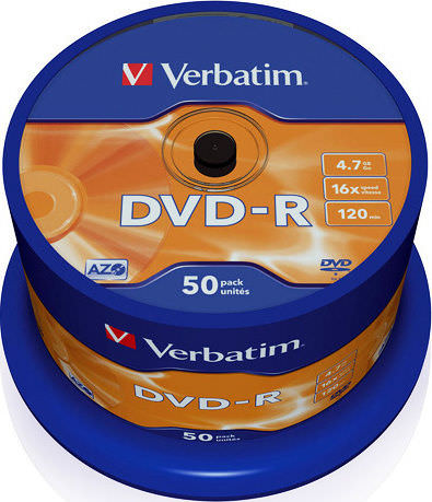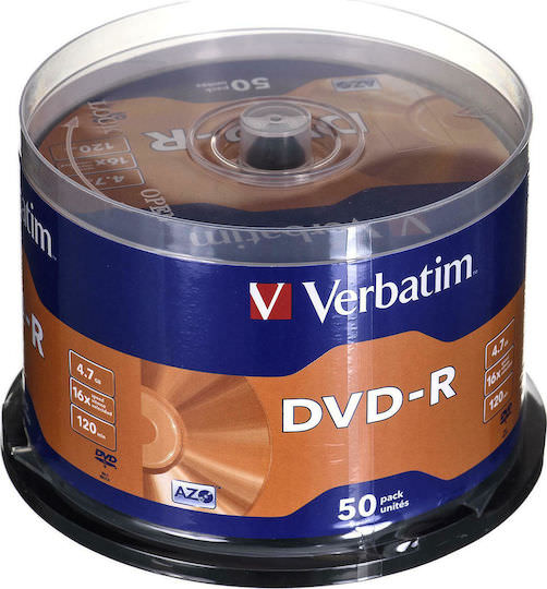 Verbatim Εγγράψιμα DVD-R 16x 4.7GB Cake Box 50τμχ