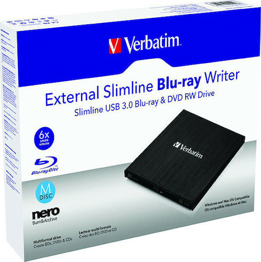 Verbatim Εξωτερικός Οδηγός Εγγραφής/Ανάγνωσης Blu-Ray/DVD/CD για Desktop / Laptop Μαύρο