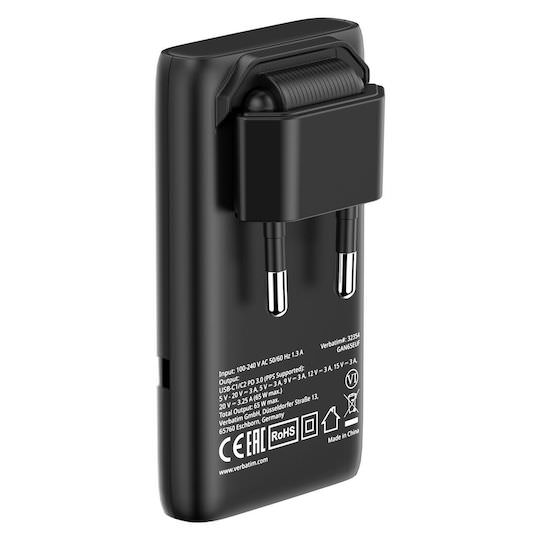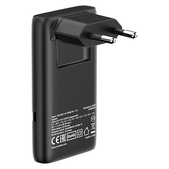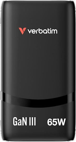 Verbatim Φορτιστής Χωρίς Καλώδιο GaN με 2 Θύρες USB-C 65W Μαύρος (Fold ‘n’ Go)