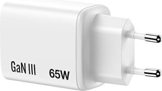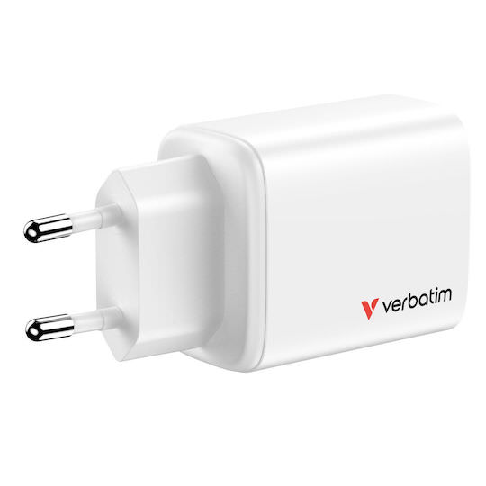Verbatim Φορτιστής Χωρίς Καλώδιο GaN με Θύρα USB-A και 2 Θύρες USB-C 65W Power Delivery / Quick Charge 3.0 Λευκός (Essentials)