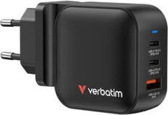 Verbatim Φορτιστής Χωρίς Καλώδιο GaN με Θύρα USB-A και 2 Θύρες USB-C 70W Power Delivery / Quick Charge 3.0 / Quick Charge 4.0 Μαύρος (Mini)