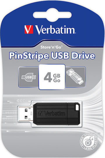 Verbatim PinStripe 4GB USB 2.0 Stick Μαύρο