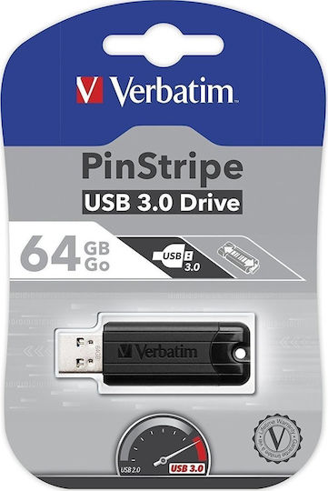 Verbatim PinStripe 64GB USB 3.0 Stick Μαύρο