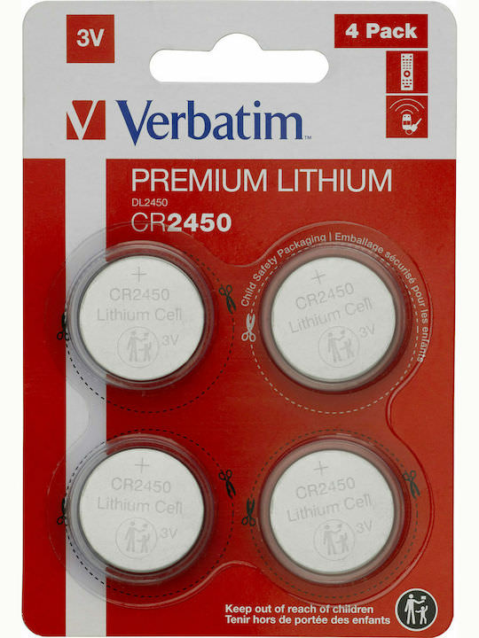 Verbatim Premium Lithium Μπαταρίες Ρολογιών CR2450 3V 4τμχ