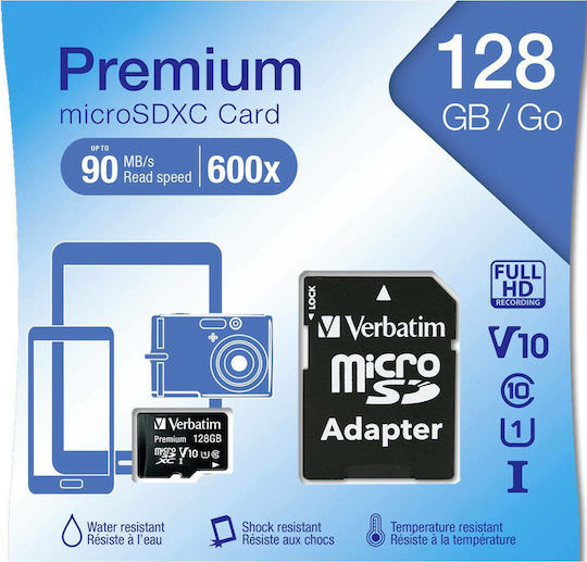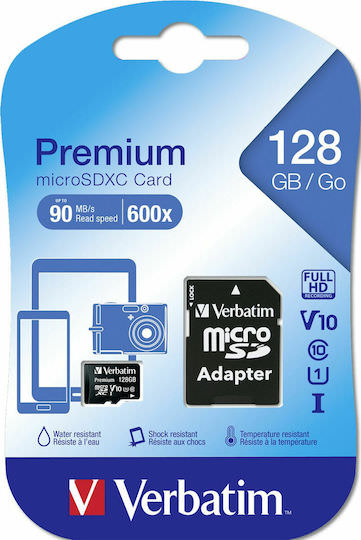 Verbatim Premium microSDXC 128GB Class 10 U1 UHS-I με αντάπτορα