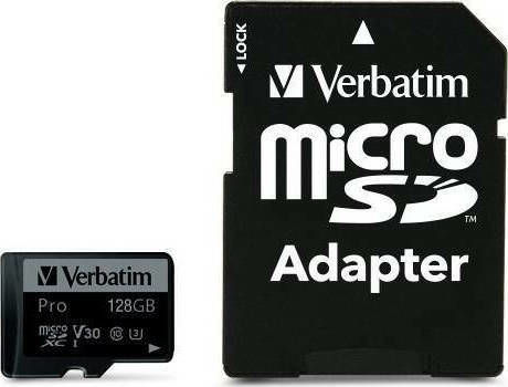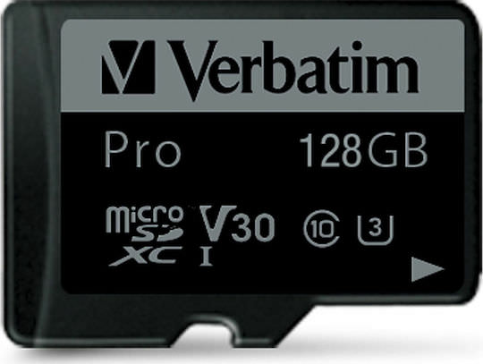 Verbatim Pro microSDXC 128GB Class 10 U3 V30 UHS-I με αντάπτορα
