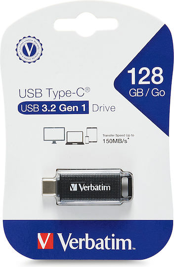 Verbatim Retractable 128GB USB 3.2 Stick με σύνδεση USB-C Μαύρο