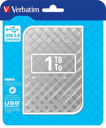 Verbatim Store ‘n’ Go Gen 2 USB 3.0 Εξωτερικός HDD 1TB 2.5″ Ασημί