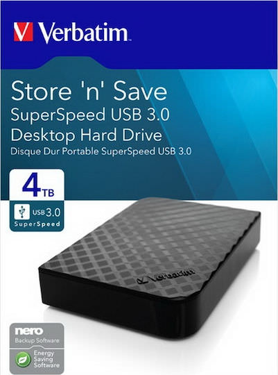 Verbatim Store ‘n’ Save USB 3.0 Εξωτερικός HDD 4TB 3.5″ Μαύρο