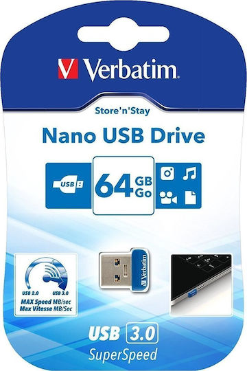 Verbatim Store ‘n’ Stay Nano 64GB USB 3.0 Stick Μπλε