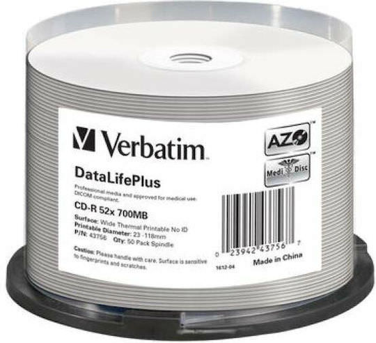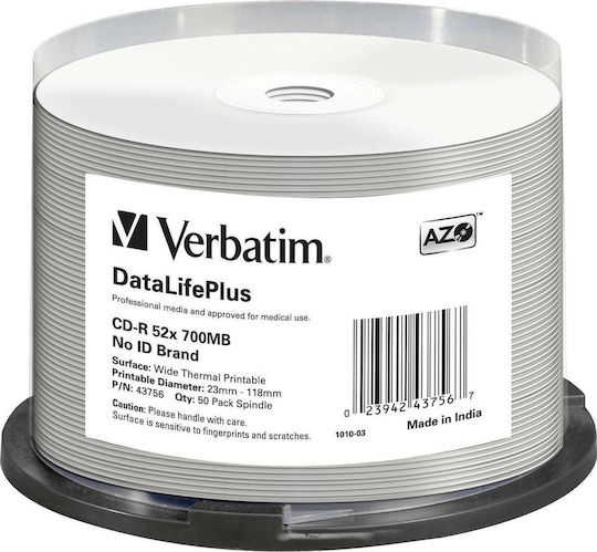 Verbatim Thermal Εγγράψιμα CD-R 52x 700MB Cake Box 50τμχ