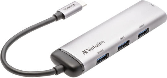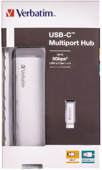 Verbatim V7 USB 3.0 Hub 4 Θυρών με σύνδεση USB-C Ασημί