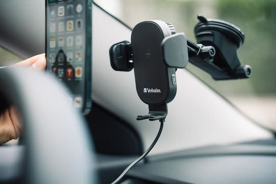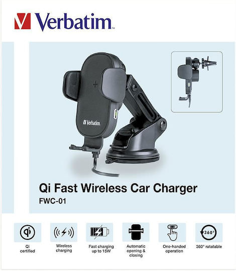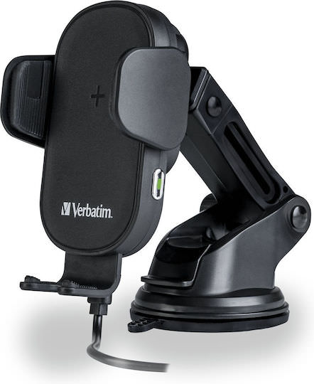 Verbatim Βάση Κινητού Αυτοκινήτου FWC-01 με Ρυθμιζόμενα Άγκιστρα και Ασύρματη Φόρτιση Μαύρη