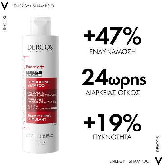 Το Dercos Energy+ είναι ένα δυναμωτικό σαμπουάν, ιδανικό συμπλήρωμα των θεραπειών κατά της τριχόπτωσης. Είναι κατάλληλο για κάθε τύπο μαλλιών.