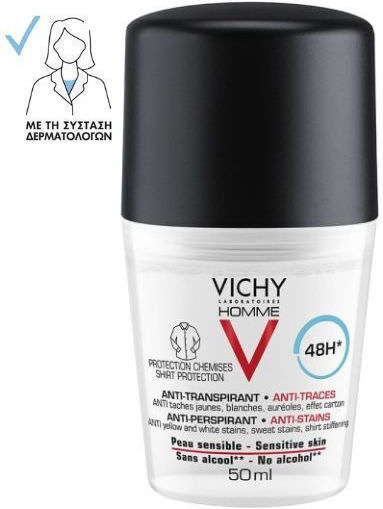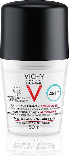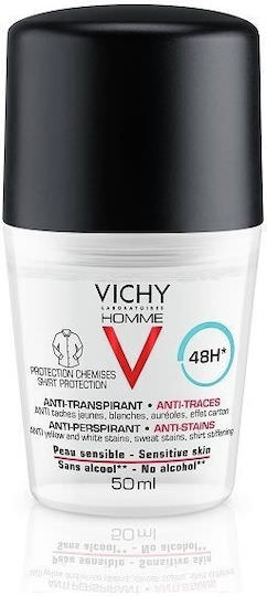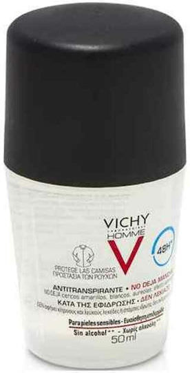 Vichy Homme Anti-Stains Roll-On Κατά των Λευκών & Κίτρινων Λεκέδων Αποσμητικό 48h σε Roll-On 50ml