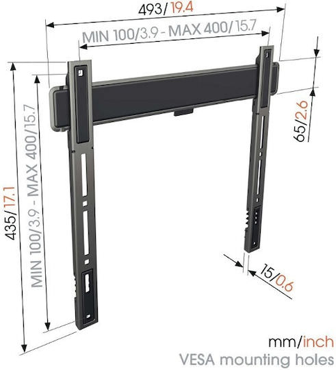 Μοτίβο οπών (VESA): 100 mm x 100 mm, 100 mm x 200 mm, 200 mm x 100 mm, 200 mm x 200 mm, 200 mm x 300 mm, 300 mm x 200 mm, 300 mm x 300 mm, 400 mm x 200 mm, 400 mm x 300 mm, 400 mm x 400 mm