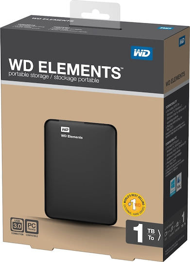 Western Digital Elements Portable USB 3.0 Εξωτερικός HDD 1TB 2.5″ Μαύρο