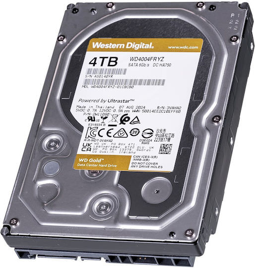 Western Digital Gold 4TB HDD Σκληρός Δίσκος 3.5″ SATA III 7200rpm με 256MB Cache για NAS / Server
