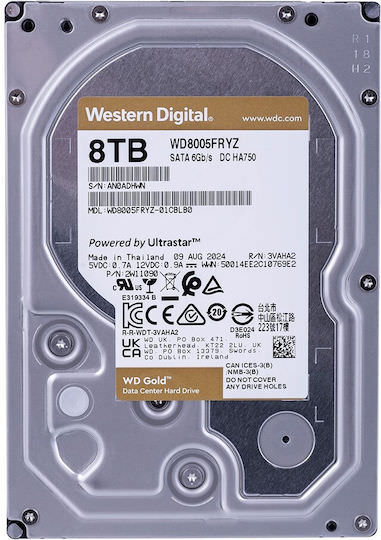 Western Digital Gold 8TB HDD Σκληρός Δίσκος 3.5″ SATA III 7200rpm με 256MB Cache για NAS / Server
