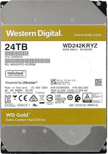 Western Digital Gold Enterprise Class 24TB HDD Σκληρός Δίσκος 3.5″ SATA III 7200rpm με 512MB Cache για Server / Καταγραφικό