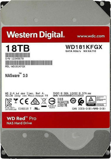 Western Digital Red Pro 18TB HDD Σκληρός Δίσκος 3.5″ SATA III 7200rpm με 512MB Cache για NAS / Server