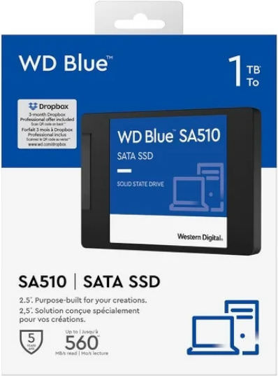 Γιατί να αγοράσετε έναν ακριβό καινούριο επιτραπέζιο υπολογιστή; Με χωρητικότητες έως και 4 TB, υψηλή αντοχή και χαμηλότερη κατανάλωση ενέργειας για να έχει ο φορητός υπολογιστής σας μεγαλύτερη διάρκεια ζωής μεταξύ φορτίσεων και μειωμένους κραδασμούς σε σχέση με τις μονάδες σκληρού δίσκου HDD, η μονάδα WD Blue SA510 SATA SSD είναι η τέλεια μονάδα δίσκου για μια μεγάλη αναβάθμιση του Η/Υ σας.