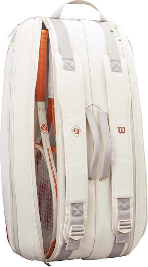 Η τσάντα Wilson Roland-Garros Super Tour 9-Pack προσφέρει λειτουργικό στυλ για ταξίδια σε αγώνες και τουρνουά τένις. Με σχεδιαστικές λεπτομέρειες εμπνευσμένες από την κομψότητα και την ενέργεια του πιο πολυδιάστατου τουρνουά χωμάτινης επιφάνειας στον κόσμο, αυτή η ευρύχωρη τσάντα μπορεί να χωρέσει έως και εννέα ρακέτες, καθώς και εξοπλισμό, ρούχα και άλλα απαραίτητα. Οι δύο κύριοι θάλαμοι είναι επενδεδυμένοι με υλικό thermoguard για προστασία των ρακέτας από ακραίες μεταβολές θερμοκρασίας.